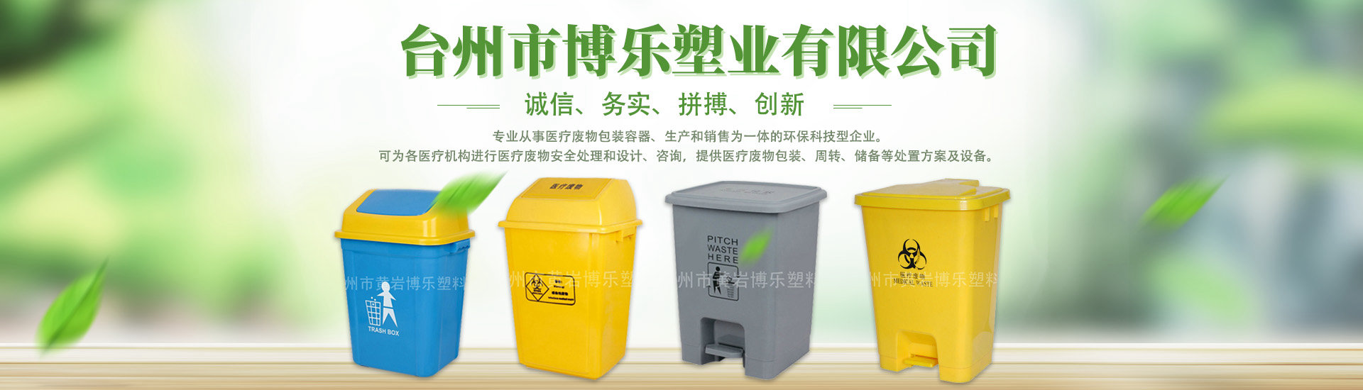 臺州市博樂塑業有限公司是一家從事醫療廢物包裝容器、生產和銷售為一體的環??萍夹推髽I。可為各醫療機構進行醫療廢物安全處理和設計、咨詢,提供醫療廢物包裝、周轉、儲備等處置方案及設備。